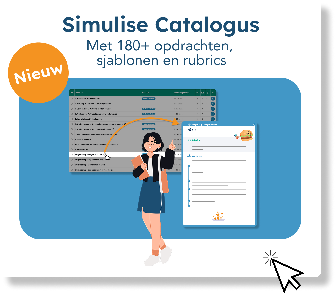 Het portfolio van Simulise is ontworpen om de ontwikkeling van competenties – zoals soft skills, vakinhoudelijke leerdoelen en beroepscompetenties – te ondersteunen.
